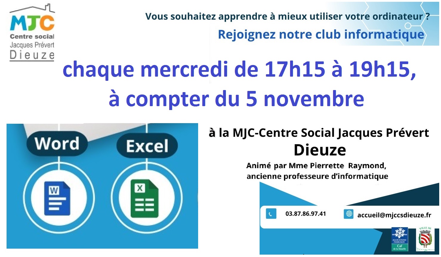 WORD... EXCEL... c'est tous les mercredis de 17h15 à 19h15,